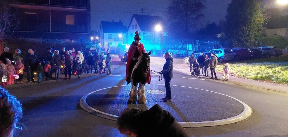Nach einer Andacht in unserer Kirche, geleitet von Herrn Pfarrer Butele, startete der Martinszug vor der Kirche, angeführt von Sankt Martin hoch zu Ross (dankenswerterweise wiederum gestellt von der RSG Bannberscheid). Die musikalische Begleitung fand in diesem Jahr, so wie wir alle hoffen, ausnahmsweise über eine Lautsprecherbox statt, da der Musikverein aufgrund von Terminunstimmigkeiten abgesagt hatte und kein kurzfristiger Ersatz gefunden werden konnte. Das tat der Stimmung jedoch keinen Abbruch. Im Gegenteil.
