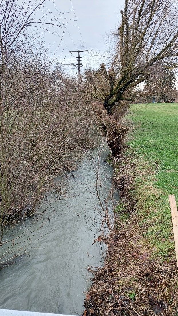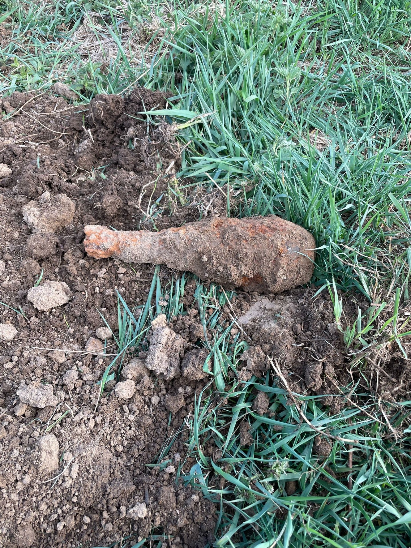Bei Arbeiten zur Sanierung und Wiederherstellung von Entwässerungsgräben (s. auch nachstehenden Bericht) zwischen der Bahnstrecke und der Gemarkungsgrenze zu Staudt wurde ein ungewöhnlicher Gegenstand zu Tage gefördert, der sich bei näherer Betrachtung als vermutliches Kampfmittel entpuppte.