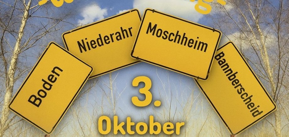 Dieses Mal ist der 3. Oktober 2025 ein Freitag. Ausrichter sind gemeinsam die vier Ortsgemeinden Boden, Niederahr, Moschheim und Bannberscheid aus den drei Verbandsgemeinden Montabaur, Wallmerod und Wirges.