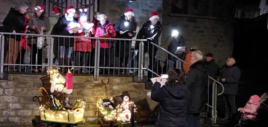 Bei einem der Jahreszeit entsprechendem Wetter und unter musikalischer Begleitung durch den Dirigenten Dieter Wick ging es auf einem Rundweg mit insgesamt 7 Stationen vom Spielplatz an der Aubachhalle zum Brunnen und weiter über die Nord-, Jahn-, Süd- und Kirchstraße zum Abschluss an unserer Kirche.