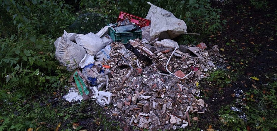 Es wurden über 830 kg Bauschutt bestehend aus Fliesen, Steinen, Müllsäcken und Plastikabfall achtlos im Wasserschutzgebiet abgeladen und musste nun auf Kosten der Allgemeinheit von unserem Bauhof entsorgt werden.
