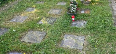 Es gibt auf unserem Friedhof einen Bereich für Wiesengräber - Eine Grabplatte schließt bündig mit dem Erdreich ab- und die umgebende Wiese kann leicht gemäht werden.