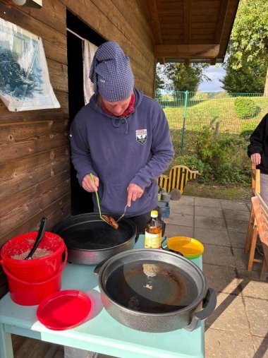 Noch vor der Kirmes wurden die bunten!!! Kartoffeln im Generationengarten ausgegraben und in von Alrun perfekt gebackene Reibekuchen verwandelt.