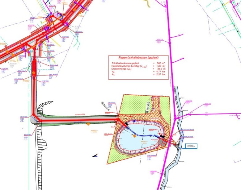 Der erste Bauabschnitt wird das Regenrückhaltebecken am „Mahdweg“ sein.