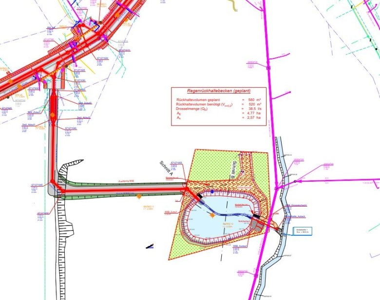 Trotzdem handelt es sich bei dem RRB um eine Baumaßnahme, die nach den Auflagen der Oberen- und Unteren- Naturschutzbehörde betrachtet werden muss.