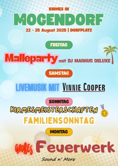 Ein solches Fest ist nur möglich durch das große Engagement vieler helfender Hände. Mein herzlicher Dank gilt allen Mitwirkenden, die mit Zeit, Kraft und Herzblut zum Gelingen der Kirmes beitragen. Besonders danken möchte ich dem Team der Firma Sound n' More aus Mogendorf, das sich Jahr für Jahr mit viel Einsatz und Professionalität um die technische Umsetzung und Organisation kümmert.