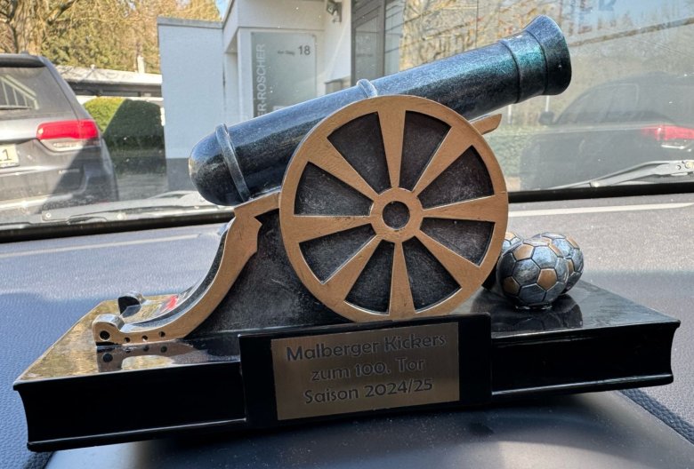 Ein weiterer besonderer Moment ereignete sich am Sonntag, dem 6. April 2025, als David Müller das 100. Saisontor für die Malberger Kickers erzielte. Zahlreiche Fans feierten diesen historischen Treffer gemeinsam mit der Mannschaft. Der Verein erhielt einen Pokal „Torkanone“ mit der Aufschrift „Malberger Kickers – zum 100. Tor, Saison 2024/25“, und auch die Ortsgemeinde Moschheim gratulierte herzlich – inklusive eines Kuchens als Zeichen der Anerkennung, mit den Worten: „Herzlichen Glückwunsch zum 100. Tor“.