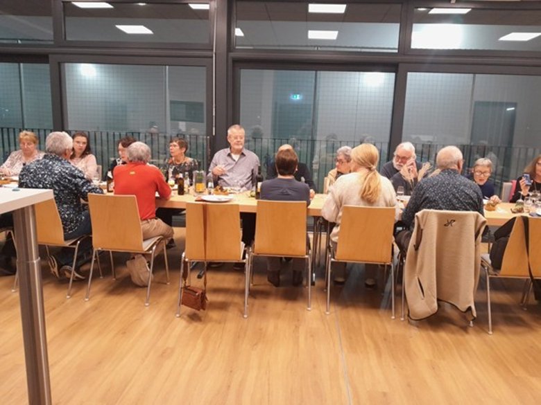 Am Freitagnachmittag, den 7. November 2025, traf eine kleine Gruppe des Partnerschaftskomitees aus Montchanin ein. Nach einem kurzen Empfang in unserem Multifunktionsgebäude ging es in die Gastfamilien. Das Wirgeser Komitee überlegte sich in diesem Jahr etwas Besonderes und servierte am Abend Westerwälder Spezialitäten aus der eigenen Küche. Nach fast 50 Jahren etwas ganz Neues für die Franzosen… Geschmeckt hat’s ihnen. Und uns auch.