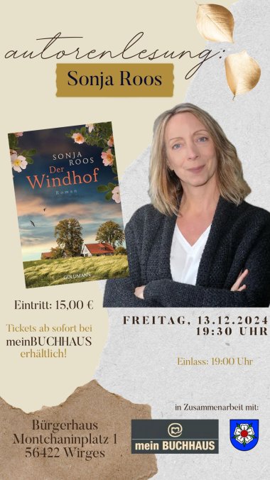 Eintrittskarten sind in der Buchhandlung mein BUCHHAUS in Wirges für jeweils 15 Euro erhältlich und können gerne telefonisch (02602-8899) oder per Mail (info@meinbuchhaus-wirges.de) reserviert werden.