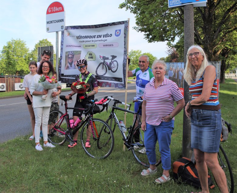 Als die Radsportlerin Veronique Lamour (37) aus Montchanin zum ersten Mal das Schild mit der Entfernung zur Partnerstadt Wirges und sah, entschied sie sich, mit dem Fahrrad nach Wirges zu fahren. Ihr Vorhaben wurde gerne von Bürgermeister Yohann Cassier und dem Comité de Jumelage von Montchanin als wertvolle Aktion im Rahmen der Städtepartnerschaft mit Wirges unterstützt.