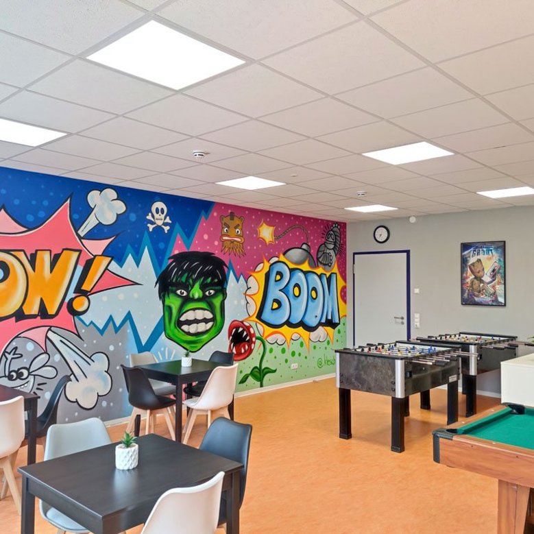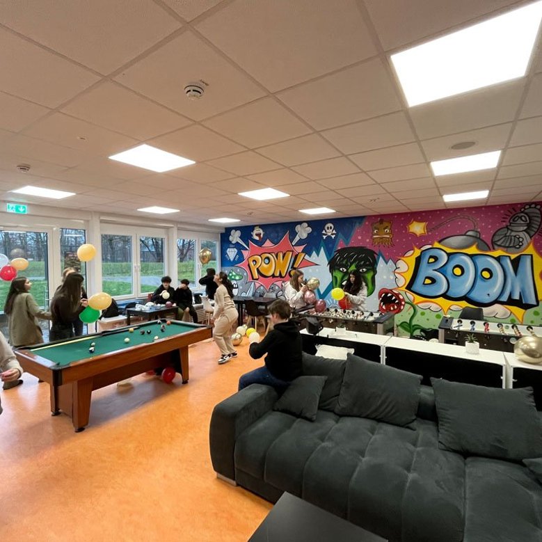 Kinder- und Jugendliche haben hier die Möglichkeit in ihrer Freizeit verschiedene Spiel-, Kultur oder Freizeitangebote selbst zu wählen. Dabei stehen sie untereinander und mit der Schulsozialarbeit in Kontakt. Im kommunikativen Austausch, bei päd. Arrangements, werden hier Gespräche über die Schule, den Alltag, den Freundeskreis oder das eigene Empfinden geführt und fachlich beraten.