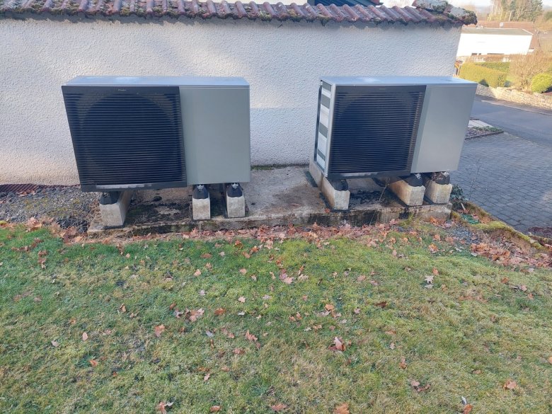 | Gebäude: 1994 | Die Brauchwasserwärmepumpe heizt den Vorratsspeicher auf 85 Grad auf, wenn die Photovoltaik-Anlage 1,5 kWh Überschuss hat. 2025/2026 wird ein sogenannter „Home-Hub“ installiert, welcher den Vorratsspeicher für das Heizungswasser erhitzt, wenn die Photovoltaik-Anlage mehr Strom erzeugt als im Haus benötigt wird sowie der Vorratsspeicher des Brauchwassers bereits 85 Grad erreicht hat. |