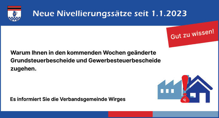 Die Verbandsgemeindekasse Wirges erinnert daran, die am 15.02.2023 fälligen Steuern und Abgaben sowie die Gewerbesteuer termingerecht unter Angabe des Kassenkontos zu zahlen.