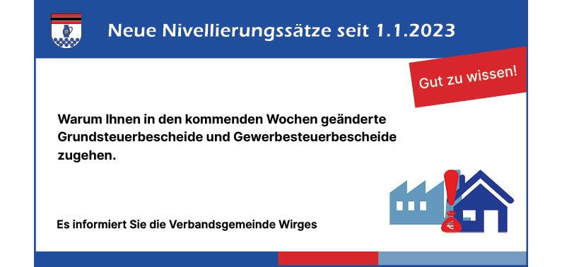 als Verbandgemeindeverwaltung informieren wir Sie nachstehend – auch im Namen der Stadt-/ Ortsbürgermeister/innen der Verbandsgemeinde Wirges – über den Sachverhalt der Erhöhung der Grundsteuer A und B sowie der Gewerbesteuer in Verbindung mit dem Landesfinanzausgleichsgesetz.