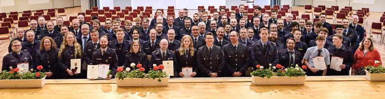 Weiter ging es mit den Ehrungen. Ganze 24 Kameradinnen und Kameraden wurden geehrt. 10 Personen wurden für 15 Jahre im Feuerwehrdienst ausgezeichnet, weitere 10 Personen für 25 Jahre und 4 Personen für 35 Jahre.