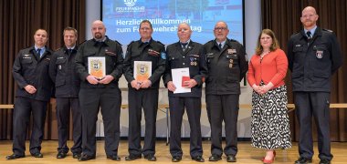 Auch Landrat Achim Schwickert, der anschließend das Wort ergriff, betonte den hohen Stellenwert des ehrenamtlichen Engagements jedes einzelnen Feuerwehrmannes und jeder einzelnen Feuerwehrfrau. „Ganz aktuell wird einem wieder vor Augen geführt, schaut man in die vom Hochwasser betroffenen Gebiete, welch großen Beitrag die Feuerwehren zur Sicherung der Bevölkerung sowie deren Hab und Gut leisten. Dafür stellt der Kreis auch zukünftig finanzielle Mittel zur Unterstützung der Feuerwehren bereit“, versichert Schwickert.