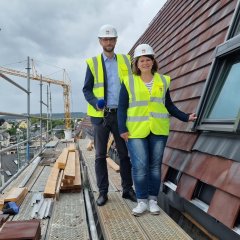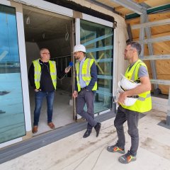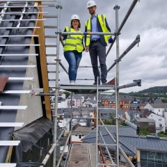 Der Rundblick gewährt spannende Einblicke in das zukünftige Verbandsgemeindehaus, lässt an vielen Stellen bereits erahnen, wie es später einmal dort aussehen wird. Dazu beantworten der Bürgermeister und sein Projektleiter alle wichtigen Fragen rund um den Neubau. Und sogar eine kleine Mutprobe wird am Ende des Rundgangs mit Bravour bestanden.