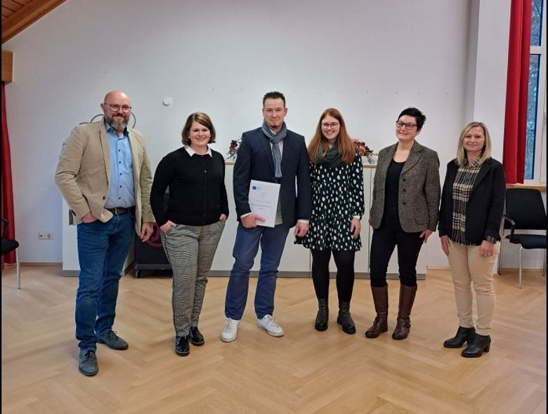 Gleichzeitig konnte Sie den langjährigen Angestellten Patrick Heitz zu seiner bestandenen Prüfung zum Verwaltungsfachwirt gratulieren.