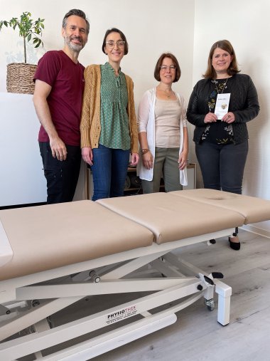 Auch Verena Lind, welche mit den Räumlichkeiten ihrer Ergotherapie Praxis mit den Räumlichkeiten der Praxis Schick verbunden ist, freute sich über den Besuch. Die Ergotherapeutin ist seit Januar 2023 am Standort und begrüßt mit Therapiehund Sammy ihre großen und kleinen Patient*innen.