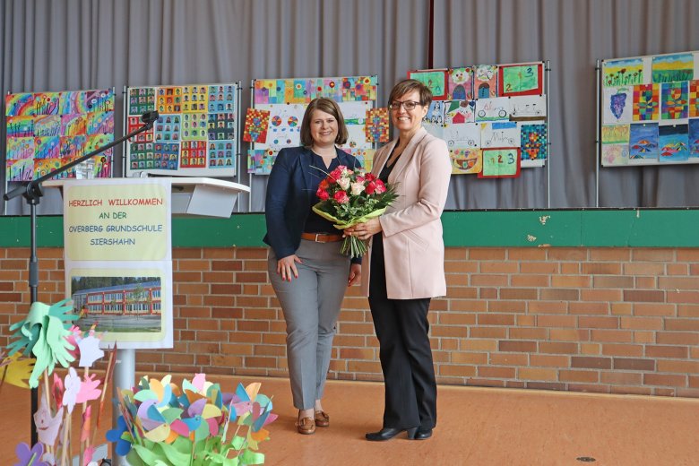 Nun kündigte Susanne Letschert die „Besitzerin der Schule“ an. Hier mussten die Kinder feststellen, dass das Schulgebäude gar nicht in Besitz der neuen Rektorin ist, sondern dass Verbandsbürger-meisterin Alexandra Marzi hier das Sagen hat. Alexandra Marzi machte in ihrer Rede die Bedeutung der Schulen für die Verbandsgemeinde deutlich und zeigte sich erfreut, die Grundschule Siershahn wieder in festen Händen zu wissen. In persönlichen Worten sprach sie Petra Stumpf ihr Vertrauen aus und betonte, dass sie sich auf die Umsetzung ihrer Ideen und die Zusammenarbeit freue.