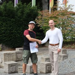 Die Urkunden- und Preisübergaben für unsere Verbandsgemeinde erfolgten durch Andreas Quirmbach, erster Beigeordneter der VG in Vertretung der Bürgermeisterin sowie Daniel Voß, Sachbearbeiter Bauen, Klimaschutz und Immobilien VG Wirges.