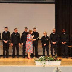 Ferner wurden unglaubliche 58 Kameradinnen und Kameraden zum/zur Feuerwehrmann/Feuerwehrfrau, Oberfeuerwehrmann, Hauptfeuerwehrmann, Löschmeister/-in, Oberlöschmeister, Hauptlöschmeister, Brandmeister und Gruppenführer ernannt.