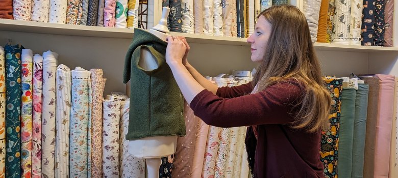 Tina Kraus lebt mit ihrer Familie in Helferskirchen und hat sich mit ihrem Hobby selbständig gemacht. Viele verschiedene Stoffarten, darunter auch Wollwalk, Jersey, Cord oder Fleece in jeweils unterschiedlichsten Mustern, Farben und Kombinationsmöglichkeiten, warten im neu eröffneten Atelier in Helferskirchen darauf, vernäht zu werden. Es gibt auch unterschiedliche Einzelstücke zum Direktkauf sowie die Möglichkeit für geplottete Personalisierungswünsche. Daneben kann man in der Wäller Nähwelt auch Stoffe für zuhause erwerben.