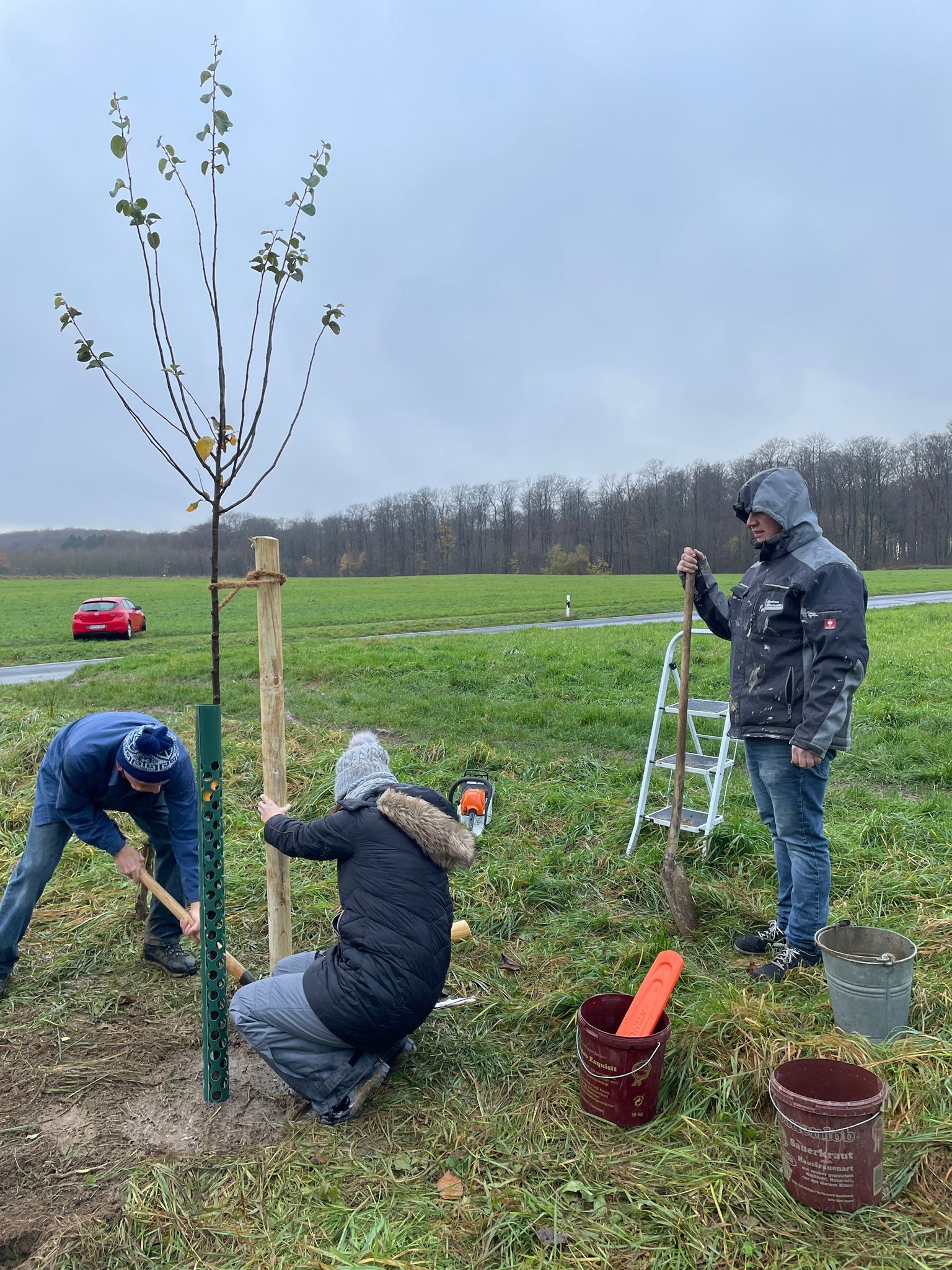 "Am 11. Oktober 1929 wurde im Anschluss von meinem allgemeinen Vortrag über Obstbau der Obst- und Gartenbauverein gegründet. Es traten 28 Mitglieder bei. In der Schädlingsbekämpfung wurden versuchsweise 39 Obstbäume mit Klebegürtel versehen, eine Vereinsabgabe von 3, 50 M. 8 Tage später, am 20.11. ergab die Zählung insgesamt 550 Weibchen und 680 Männchen Frostspanner. Diese Schädlinge treten in der ganzen Gemarkung auf. Im Herbst 1929 wurden insgesamt 84 Obstbäume gepflanzt, dieselben wurden aus Grenzhausen bezogen. Ende Dezember schaffte der Verein eine Obstbaumspritze in Höhe von 115.- M. an. Im Januar wurden von den Mitgliedern insgesamt 73 Edelreiser bestellt. In der Pflege der Bäume ist im Herbst wie im Winter sehr viel getan worden."
